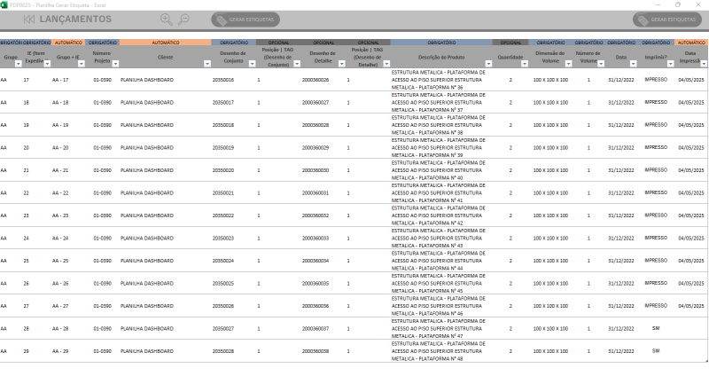 Organize seus projetos com informações padronizadas para gerar etiquetas precisas.