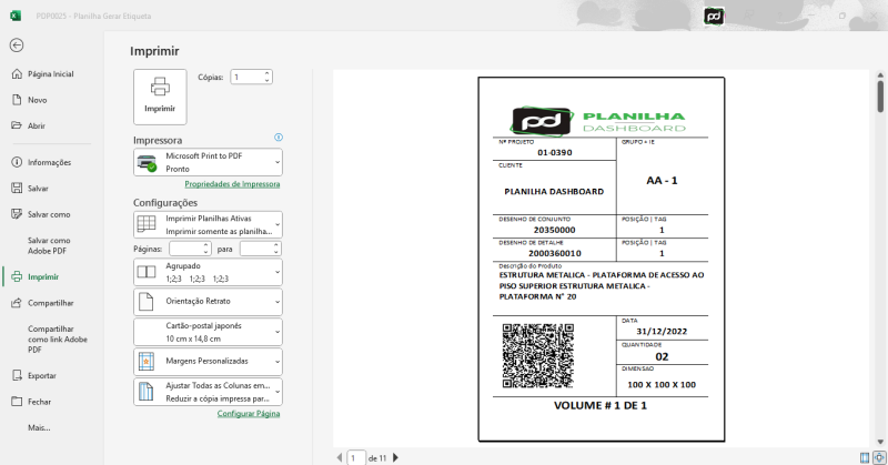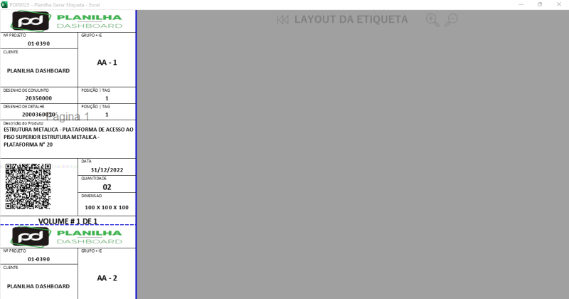 A Planilha Gerar Etiqueta foi desenvolvida para facilitar o processo de identificação de projetos e componentes com etiquetas personalizadas e QR Code. Tudo isso direto do Excel, com menus intuitivos e automações inteligentes.